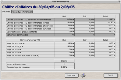 Chiffre d'affaire, nombre de commandes (midi, soir, total)